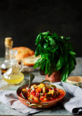 Słodka papryka antipasti.. stylu rustykalnym. Selektywna koncentracja