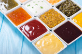 Zestaw różnych sosów w misce ceramicznej