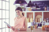 Zdjęcie "Uśmiechnięta młoda kobieta mieszająca świeżą sałatkę w kuchni." może być wykorzystywane do celów osobistych i komercyjnych zgodnie z warunkami zakupionej licencji Royalty-free. Obraz jest dostępny do pobrania w jakości wysokiej rozdzielczości do 5760x3840.
