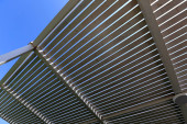 baldachim dla ochrony przed gorącym słońcem nad brzegiem Morza Śródziemnego w północnej części Izraela