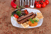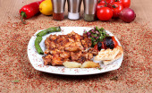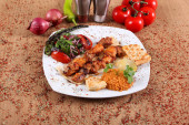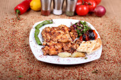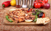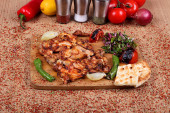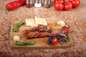 Pieczony kurczak z zielonym pepperoni i sałatka ze świeżym vegetabl