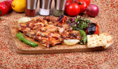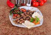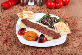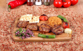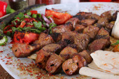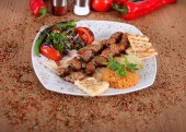 Świeża i grillowana wątróbka ze świeżo mielonym pieprzem i cebulą