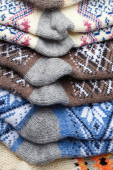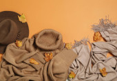 Miękkie dzianiny skarpetki na pomarańczowym tle, płasko leżał z miejscem na tekst. Odzież zimowa