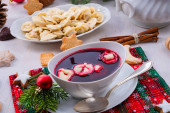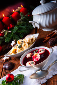 tradycyjny polski wigilijny barszcz z pierogami