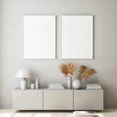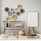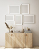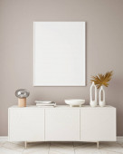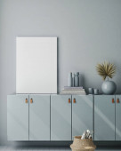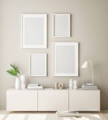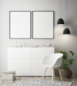makieta ramka plakat w nowoczesnym tle wnętrza, pokój dzienny, styl skandynawski, renderowanie 3D, Ilustracja 3D
