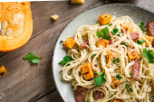 Zdjęcie "Makaron z dyni" może być wykorzystywane do celów osobistych i komercyjnych zgodnie z warunkami zakupionej licencji Royalty-free. Obraz jest dostępny do pobrania w jakości wysokiej rozdzielczości do 5760x3840.