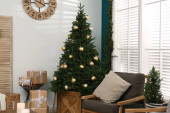 Zdjęcie "Piękne wnętrze z ozdobioną choinką w salonie" może być wykorzystywane do celów osobistych i komercyjnych zgodnie z warunkami zakupionej licencji Royalty-free. Obraz jest dostępny do pobrania w jakości wysokiej rozdzielczości do 5760x3840.