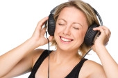 młoda kobieta korzystających muzyki za pomocą słuchawek