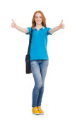 Zdjęcie "dziewczyna młoda studentka pokazuje kciuk znak" może być wykorzystywane do celów osobistych i komercyjnych zgodnie z warunkami zakupionej licencji Royalty-free. Obraz jest dostępny do pobrania w jakości wysokiej rozdzielczości do 5760x3840.