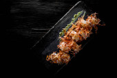 Zdjęcie "widok z góry smaczne pikantne mięso tajskie makaron w pobliżu pałeczek na drewnianej szarej powierzchni" może być wykorzystywane do celów osobistych i komercyjnych zgodnie z warunkami zakupionej licencji Royalty-free. Obraz jest dostępny do pobrania w jakości wysokiej rozdzielczości do 5760x3840.