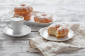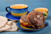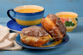 Tradycyjne pączki z lukrem nadziewane marmoladą.