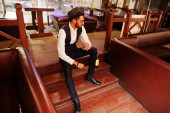 Przystojny, dobrze ubrany arabczyk ze szklanką whisky i cygą.
