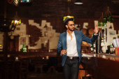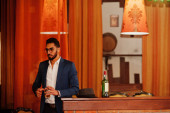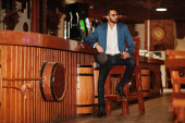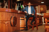 Przystojny, dobrze ubrany arabczyk ze szklanką whisky i cygą.