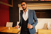 Zdjęcie "Przystojny, dobrze ubrany arabczyk ze szklanką whisky i cygą." może być wykorzystywane do celów osobistych i komercyjnych zgodnie z warunkami zakupionej licencji Royalty-free. Obraz jest dostępny do pobrania w jakości wysokiej rozdzielczości do 5760x3840.