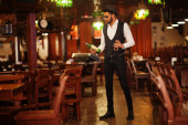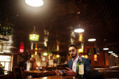 Przystojny, dobrze ubrany arabczyk ze szklanką whisky i cygą.