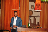 Przystojny, dobrze ubrany arabczyk ze szklanką whisky i cygą.