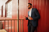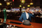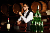 Przystojny, dobrze ubrany arabczyk ze szklanką whisky i cygą.