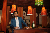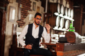 Przystojny, dobrze ubrany arabczyk ze szklanką whisky i cygą.