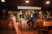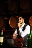 Przystojny, dobrze ubrany arabczyk ze szklanką whisky i cygą.