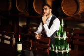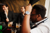 Przystojny, dobrze ubrany arabczyk ze szklanką whisky i cygą.