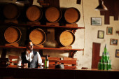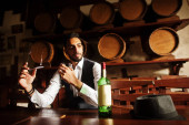 Przystojny, dobrze ubrany arabczyk ze szklanką whisky i cygą.