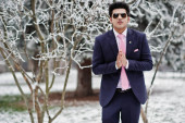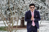 Przystojny, dobrze ubrany arabczyk ze szklanką whisky i cygą.