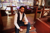 Przystojny, dobrze ubrany arabczyk ze szklanką whisky i cygą.
