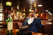 Zdjęcie "Przystojny, dobrze ubrany arabczyk ze szklanką whisky i cygą." może być wykorzystywane do celów osobistych i komercyjnych zgodnie z warunkami zakupionej licencji Royalty-free. Obraz jest dostępny do pobrania w jakości wysokiej rozdzielczości do 5760x3840.