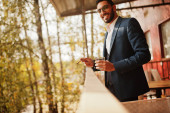 Zdjęcie "Przystojny dobrze ubrany arabczyk pali cygaro na balkonie pubu." może być wykorzystywane do celów osobistych i komercyjnych zgodnie z warunkami zakupionej licencji Royalty-free. Obraz jest dostępny do pobrania w jakości wysokiej rozdzielczości do 5760x3840.