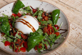 Guacamole i wędzona sałatka z łososia na białym talerzu