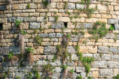 Zdjęcie "Fragment tradycyjnego ogrodzenia z kamiennych bloków. Na szczycie ogrodzenia rośnie roślina wspinaczkowa. Besancon. Francja." może być wykorzystywane do celów osobistych i komercyjnych zgodnie z warunkami zakupionej licencji Royalty-free. Obraz jest dostępny do pobrania w jakości wysokiej rozdzielczości do 5760x3840.