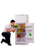 człowiek stoi w pobliżu otworzył lodówkę z owocami