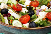 Miseczka sałatki z warzyw i sałat z pomidorami, ogórkiem