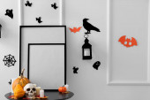 Zdjęcie "Stylowe wnętrze pokoju urządzone na Halloween wakacje" może być wykorzystywane do celów osobistych i komercyjnych zgodnie z warunkami zakupionej licencji Royalty-free. Obraz jest dostępny do pobrania w jakości wysokiej rozdzielczości do 5760x3840.