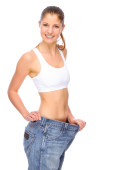 piękna, młoda dziewczyna robi ćwiczenia na białym tle