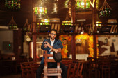 Portret przystojnego brodatego południowoazjaty, młode Indie