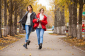 Zdjęcie "Dwie piękne dziewczyny odpoczywające na ławce w jesiennym parku" może być wykorzystywane do celów osobistych i komercyjnych zgodnie z warunkami zakupionej licencji Royalty-free. Obraz jest dostępny do pobrania w jakości wysokiej rozdzielczości do 5760x3840.