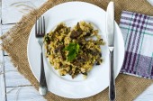 Grzyby, chorizo i tymianek risotto z sałatą rakietową