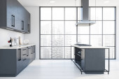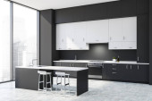 Zdjęcie "Szary i biały kącik kuchenny z barem" może być wykorzystywane do celów osobistych i komercyjnych zgodnie z warunkami zakupionej licencji Royalty-free. Obraz jest dostępny do pobrania w jakości wysokiej rozdzielczości do 5760x3840.