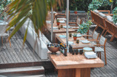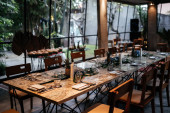 Szklane goblety na stole. Tabela doręczany. Ustawienia stołu