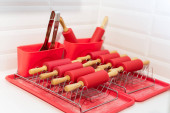 Zdjęcie "Szare ręcznie robione płyty ceramiczne. Szkliwione płyty gliniane w warsztacie garncarskim." może być wykorzystywane do celów osobistych i komercyjnych zgodnie z warunkami zakupionej licencji Royalty-free. Obraz jest dostępny do pobrania w jakości wysokiej rozdzielczości do 5760x3840.