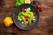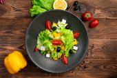 Smażone warzywa wokowe: bakłażan, marchew, grzyby, cukinia, czerwona cebula, kiełki soi i liście szpinaku smażone w sosie teriyaki