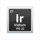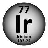 Symbol irydu. Podpisz Iridium z liczbą atomową i wagą atomową
