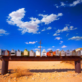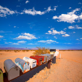 skrzynki pocztowe w wieku vintage w pustyni zachodniej Kalifornii