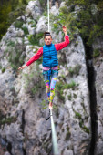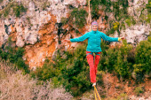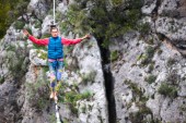 Zdjęcie "Highline w górach." może być wykorzystywane do celów osobistych i komercyjnych zgodnie z warunkami zakupionej licencji Royalty-free. Obraz jest dostępny do pobrania w jakości wysokiej rozdzielczości do 5760x3840.