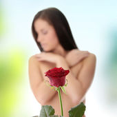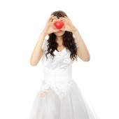 piękna młoda kobieta z czerwonym sercem balon