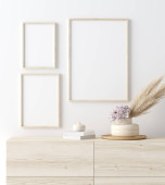 Utwórz ramę plakatu we wnętrzu salonu. Wnętrze skandynawskiego stylu. 3d renderowanie