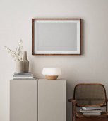 Zdjęcie "Utwórz ramę plakatu we wnętrzu salonu. Wnętrze skandynawskiego stylu. 3d renderowanie" może być wykorzystywane do celów osobistych i komercyjnych zgodnie z warunkami zakupionej licencji Royalty-free. Obraz jest dostępny do pobrania w jakości wysokiej rozdzielczości do 5760x3840.