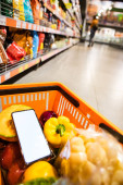 kobieta zrobić zakupy sprawdzić, aby kupić listę w telefonie