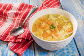 Zdjęcie "Bulion - zupa z kurczaka w misce." może być wykorzystywane do celów osobistych i komercyjnych zgodnie z warunkami zakupionej licencji Royalty-free. Obraz jest dostępny do pobrania w jakości wysokiej rozdzielczości do 5760x3840.